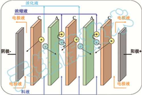 均相膜電滲析工作原理示意圖
